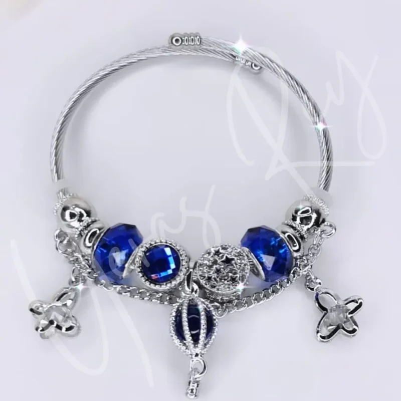 PULSERA TIPO PANDORA DE GLOBO EN AZUL REY