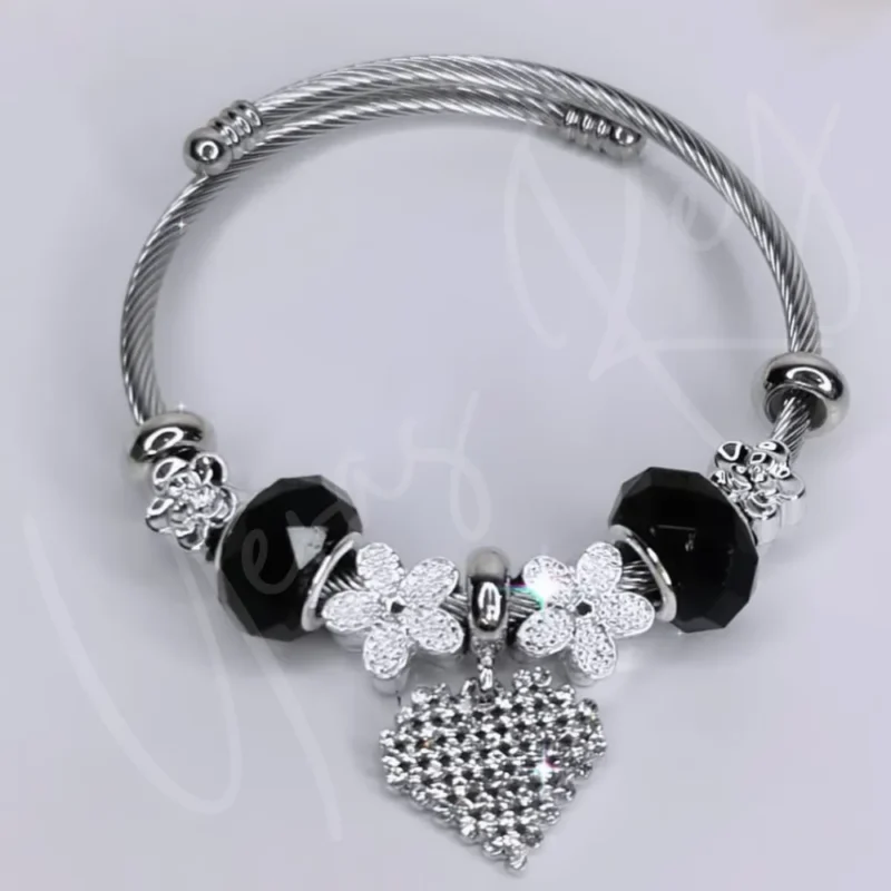PULSERA TIPO PANDORA DE CORAZON EN NEGRO