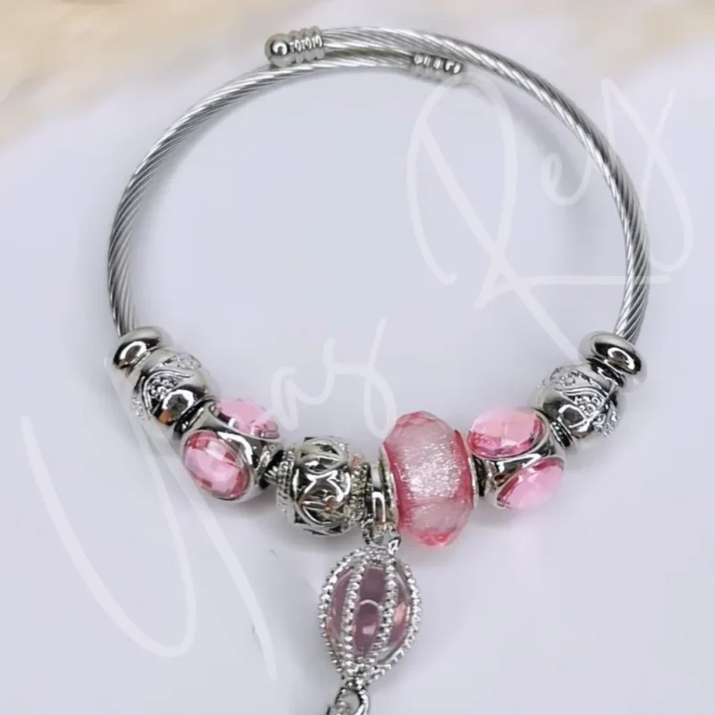 PULSERA TIPO PANDORA DE GLOBO ROSA PASTEL